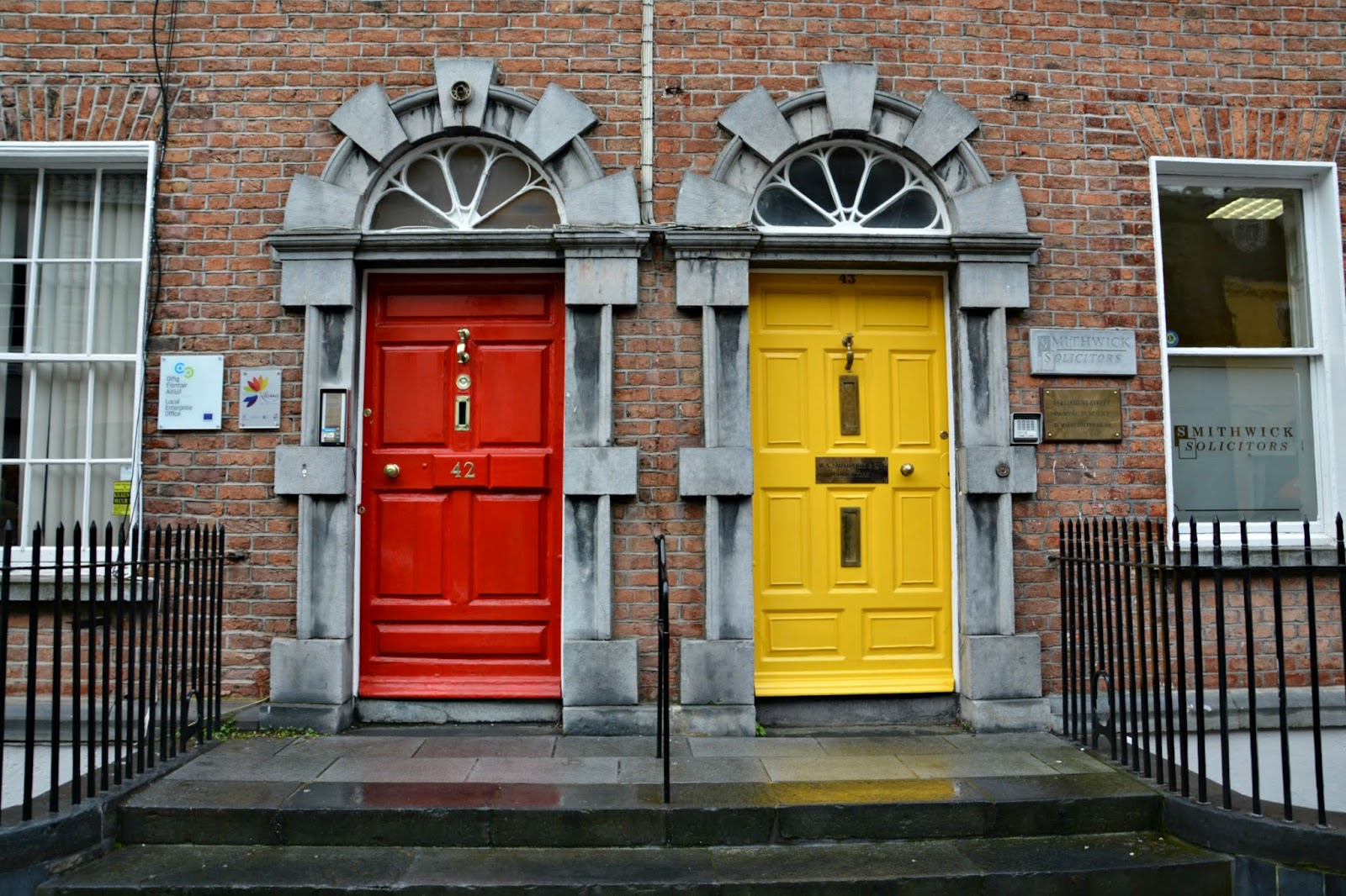 Anche a Kilkenny, come a Dublino, ci si accorge che lo stile georgiano fa parte dell'essenza della città. Gli edifici - anche se colorati - sono caratterizzati da un insieme di piccoli mattoncini e le porte non passano mai inosservate. Dalla porticina viola, che trovo incredibilmente bella e al tempo stesso eccentrica, a queste due eleganti porte in basso che ricordano un po' la tifoseria romana (o leccese, fate un po' voi)! :)