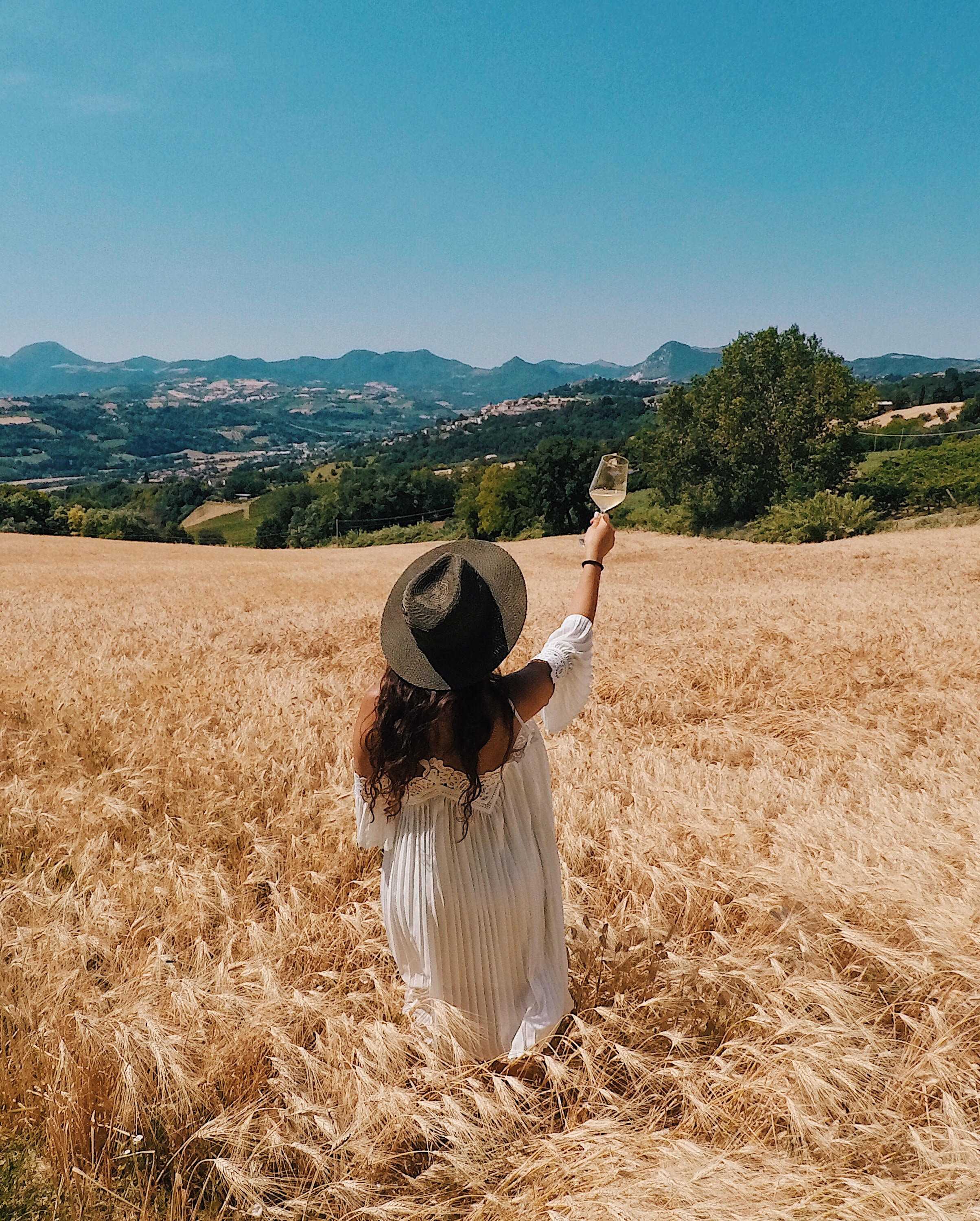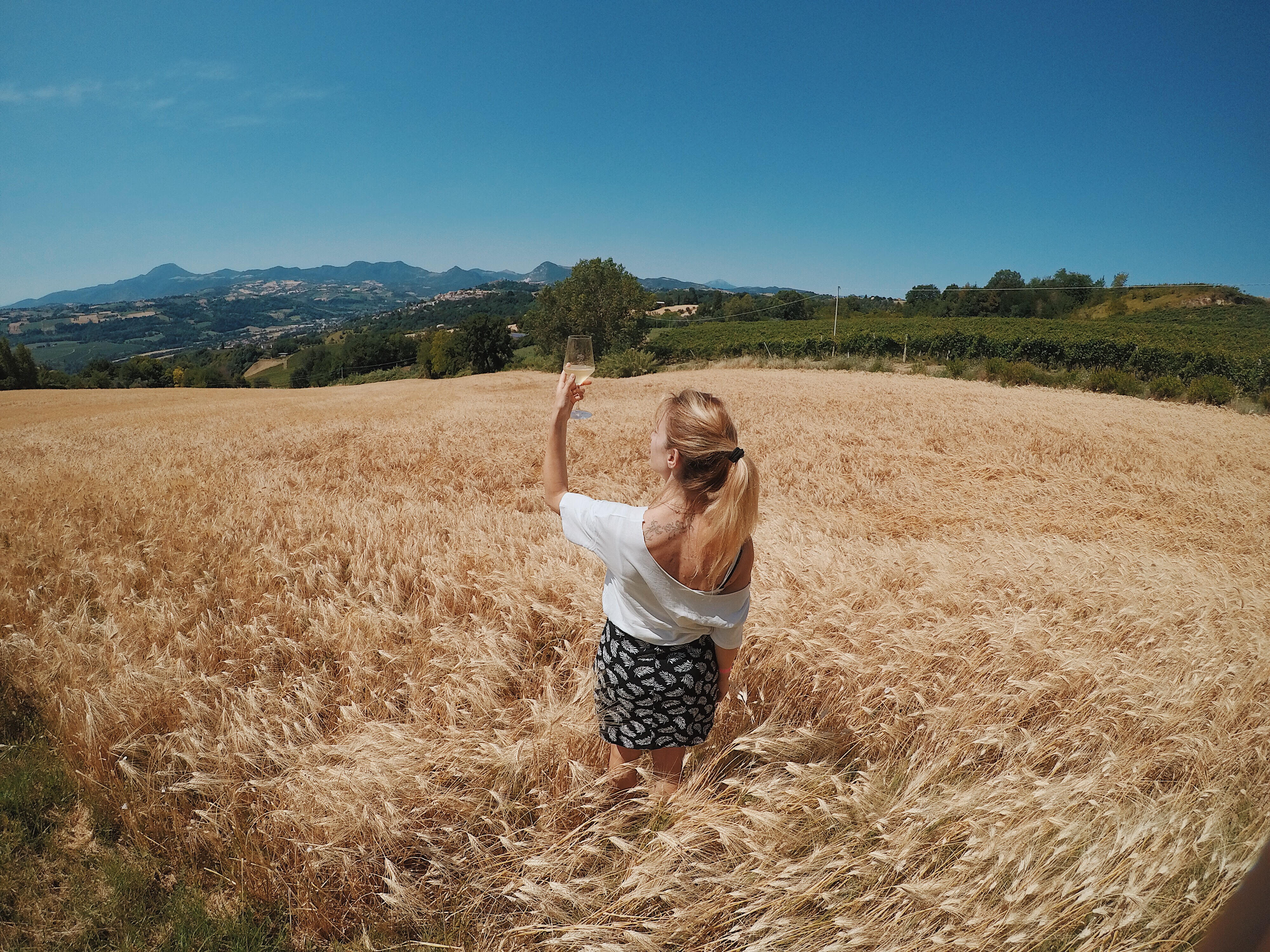 Pensate che il vino viene imbottigliato a mano da tutti membri della famiglia e - ciliegina sulla torta - a due etichette è stato dato il nome delle figlie del proprietario. Nell'atmosfera bucolica circostante l'azienda abbiamo chiacchierato e degustato i vini lasciandoli decantare tra vigne e campi di grano. Sorseggiando quel Verdicchio ho colto la vera essenza delle Marche.