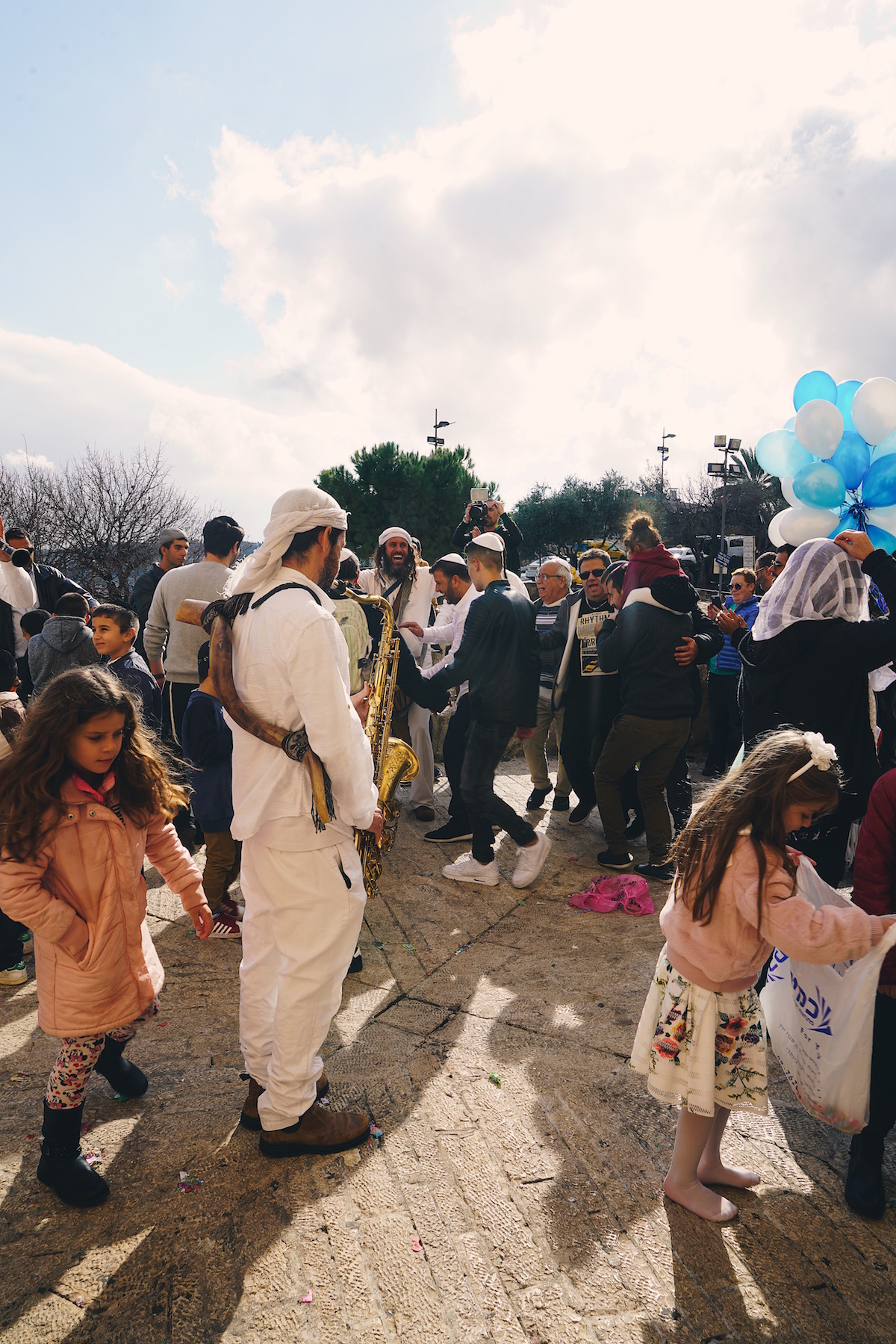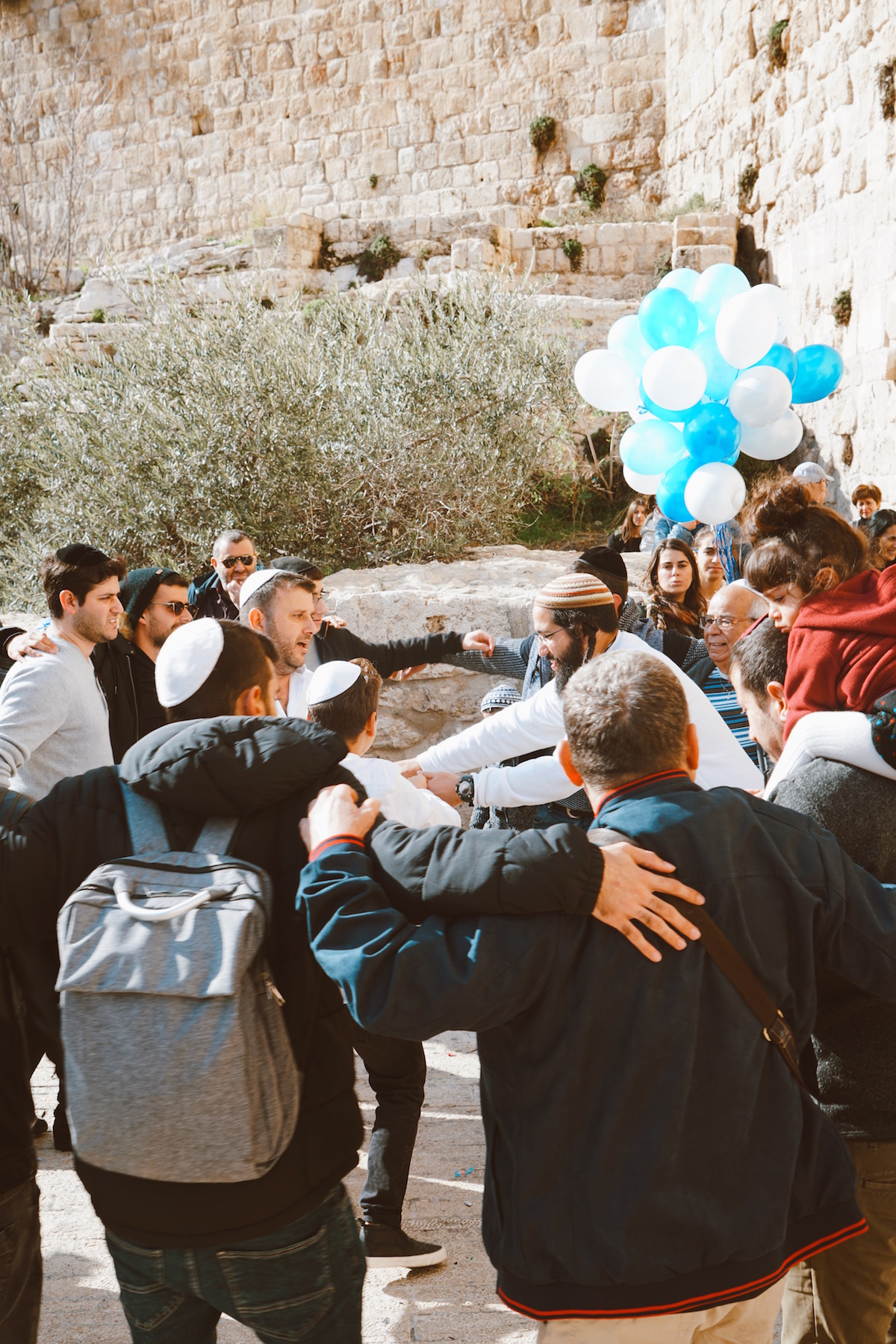 Durante la vostra visita a Gerusalemme, con un po' di fortuna, vi imbatterete nel turbinio di festa delle celebrazioni ebraiche. Come è capitato a me. Il giorno del mio arrivo a Gerusalemme sono stata letteralmente travolta dai festeggiamenti del bar mitzvah (che si tiene quando un bambino ebreo raggiunge l'età della maturità: 13 anni e un giorno per i maschietti, 12 anni e un giorno per le femminucce). I festeggiamenti prevedono balli accompagnati da musica live, canti e ampi sorrisi. Insomma, una gran festa per uomini e donne, di ogni età. Per me è stata la prima volta davanti a questo spettacolo e sono rimasta incantata.