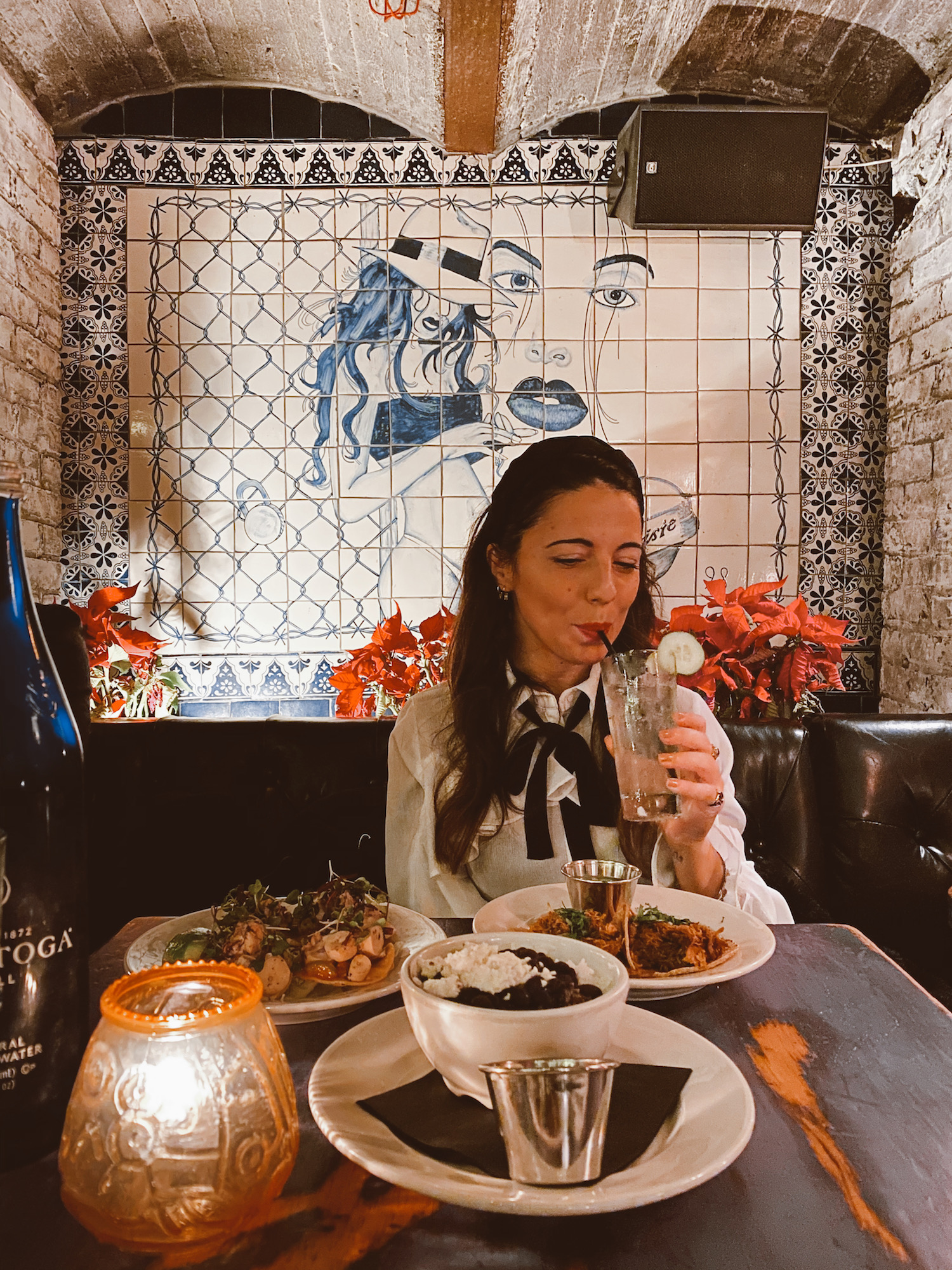 - LA ESQUINA. Il più fotogenico e cool è sicuramente La Esquina, a SoHo. Dall'esterno vi sembrerà un fast food messicano dal nome The Corner (nella foto in copertina). In realtà il piano inferiore ha uno stile completamente diverso, molto più sofisticato. La cosa curiosa è che qui, per accedervi, bisogna passare dalla cucina (sempre accompagnati dal personale). Arriverete in una sala più ampia con il bancone (dove molti ospiti si fermano per ballare) e poi vi faranno accomodare in una sala più piccola dalle luci soffuse e dalle maioliche bianche e azzurre. A me piace molto, anche se non è proprio economico (in due abbiamo speso 100 dollari per qualche tacos, qualche tostadas e 2 gin tonic). Visto il successo, negli ultimi tempi La Esquina sta aprendo altri punti, ma io preferisco sempre la sede "storica" a SoHo.