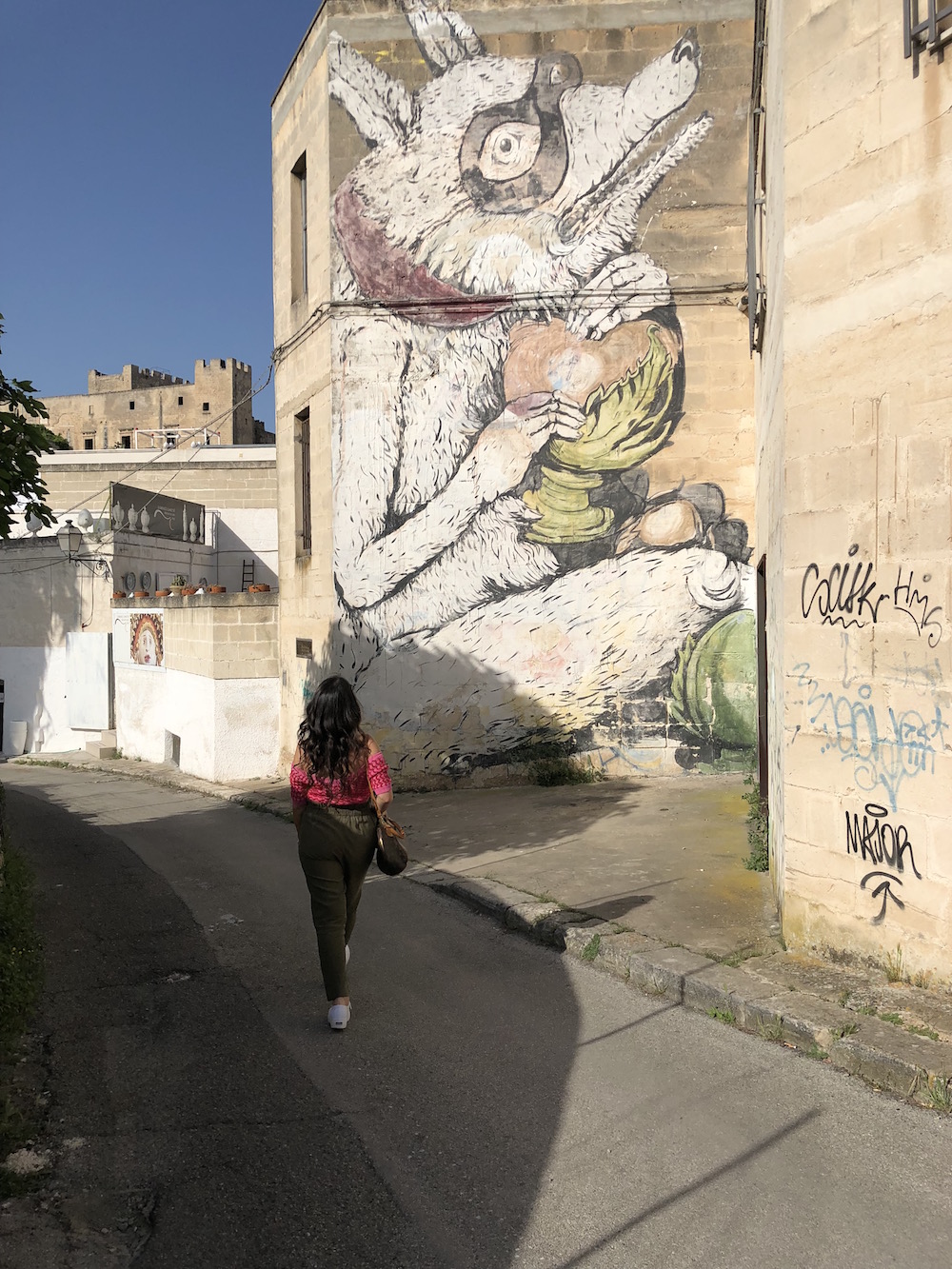 Ma Grottaglie è anche street art. Il nuovo che si mescola all'antico. Passeggiando tra i vicoli del quartiere vecchio, si viene a creare un'antitesi tra la tradizione e l'innovazione, tra l'intonaco dei muri e i colori dei graffiti. Una peculiarità che amo tantissimo.