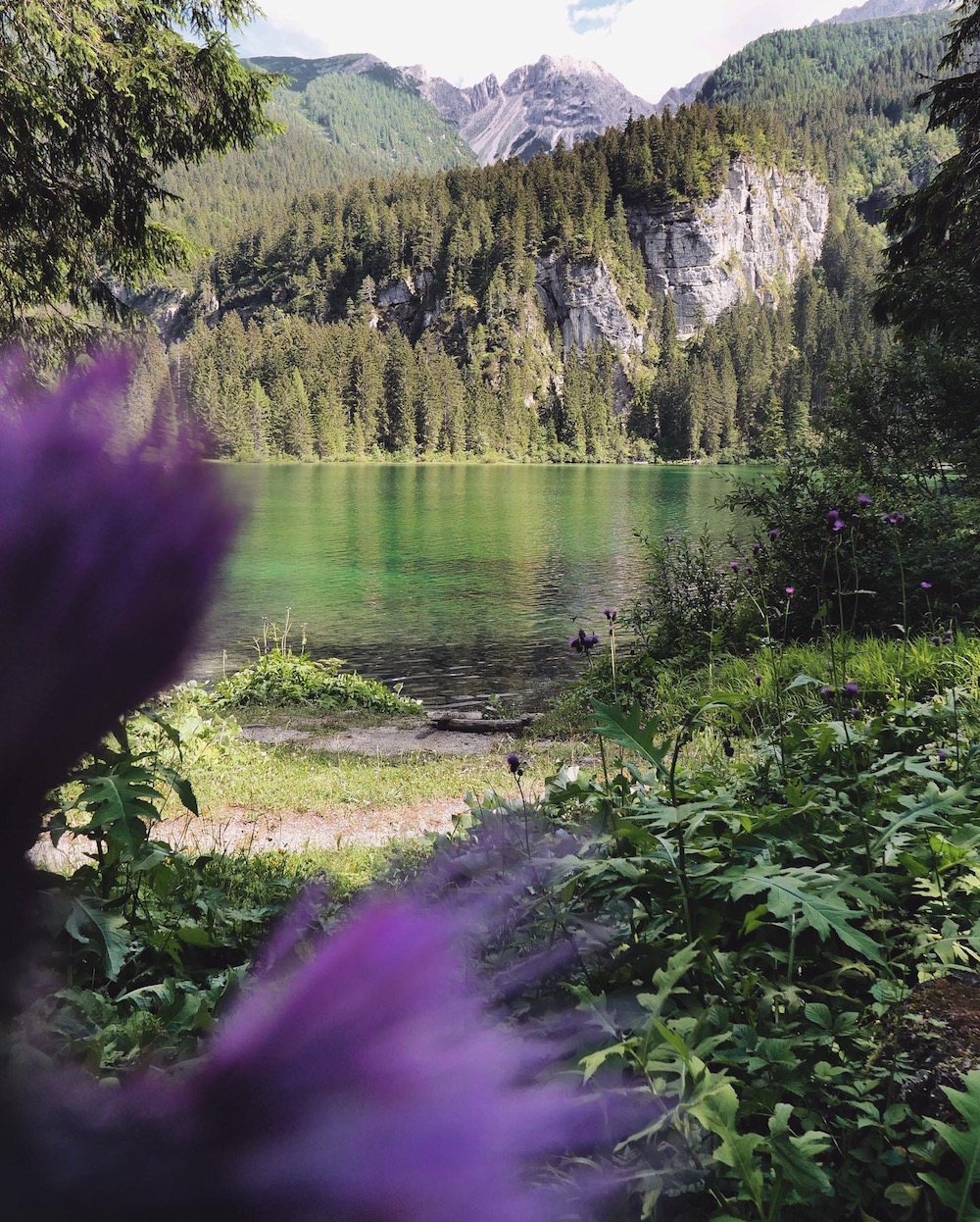 Con la pancia piena e soddisfatta, ci siamo immersi nello spettacolo del Lago di Tovel, gioiello del Parco Naturale Adamello Brenta. Incredibile come i colori variano da un punto all'altro lungo il percorso. Le sfumature del lago virano dal verde intenso all'azzurro, fino all'acquamarina che ricorda quasi le acque caraibiche. C'è un punto - molto amato dai bagnanti - dove i colori del lago mi hanno ricordato così tanto le spiagge caraibiche che ho dovuto alzare lo sguardo verso i pini e le montagne per ricordarmi che mi trovavo in Trentino. E ho scoperto che quella che sembra sabbia caraibica è in realtà polvere di Dolomia. Incredibile vero? Il lago di Tovel è un paradiso fuori dal mondo, letteralmente. Così fuori dal mondo che, in prossimità dell'ingresso nel percorso, la connessione telefonica sparisce e ci si gode pienamente lo spettacolo circostante.