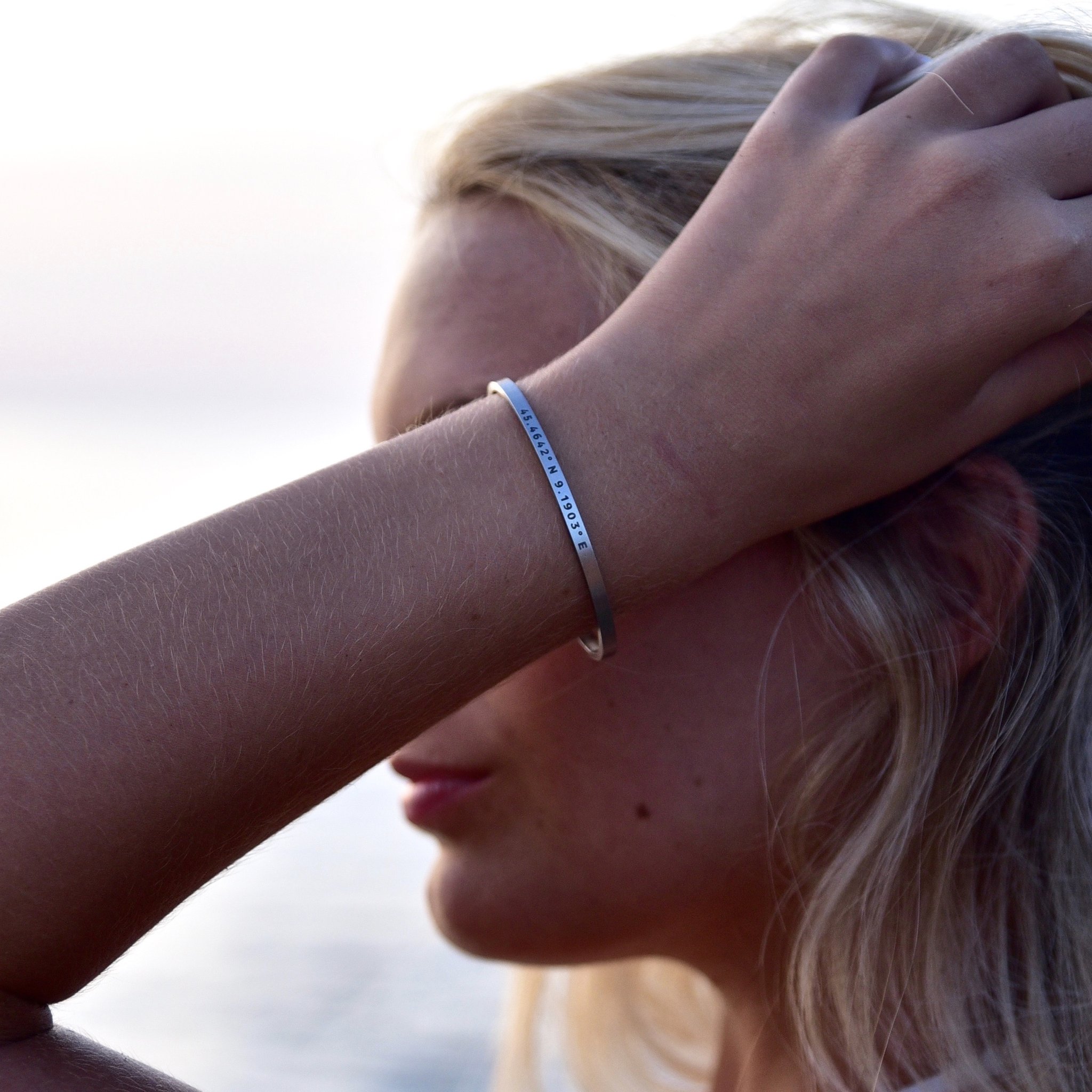 Permette di indossare un ricordo, una data speciale, la coordinata di un luogo importante, una frase significativa, un mantra o un motto, un soprannome... e di portarlo per sempre con te. È un regalo destinato a durare per sempre perché racconta quel che TU sei o quel che TU hai nel cuore. E questo non passerà mai di moda.