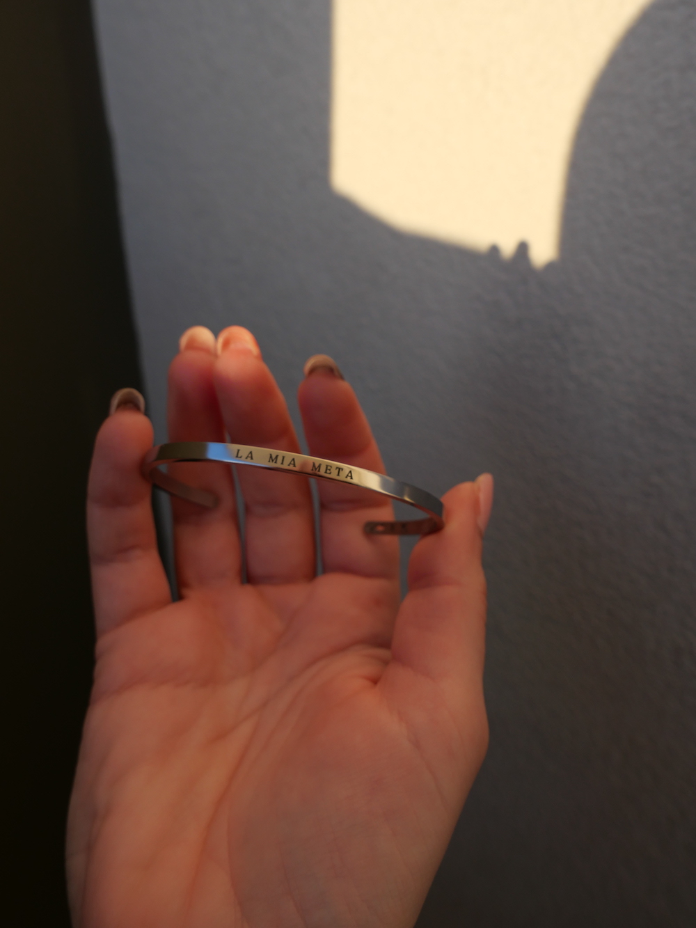 Prima ho scelto con cura le frasi, poi con i ragazzi abbiamo selezionato il font (alla fine ha vinto uno dei font che utilizzo qui nel blog) e infine con mia sorella abbiamo scattato le foto una volta che i primi bracciali sono stati incisi e mi sono stati recapitati a casa.