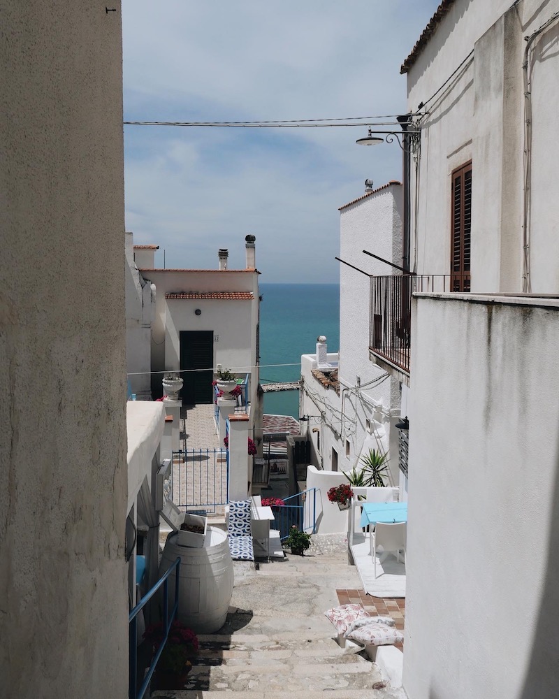 Se per trovare borghi blu e bianchi pensate che bisogna spingersi fino in Grecia, beh, vi sbagliate di grosso. E il centro storico di Peschici ve ne darà la conferma. Il profumo di buono del bucato appena steso, i vicoli candidi e curati, le botteghe degli artigiani, i ristorantini dall'atmosfera intima e speciale e persino una cupola azzurra. Tutto a Peschici sa un po' di vacanza. E io la adoro.