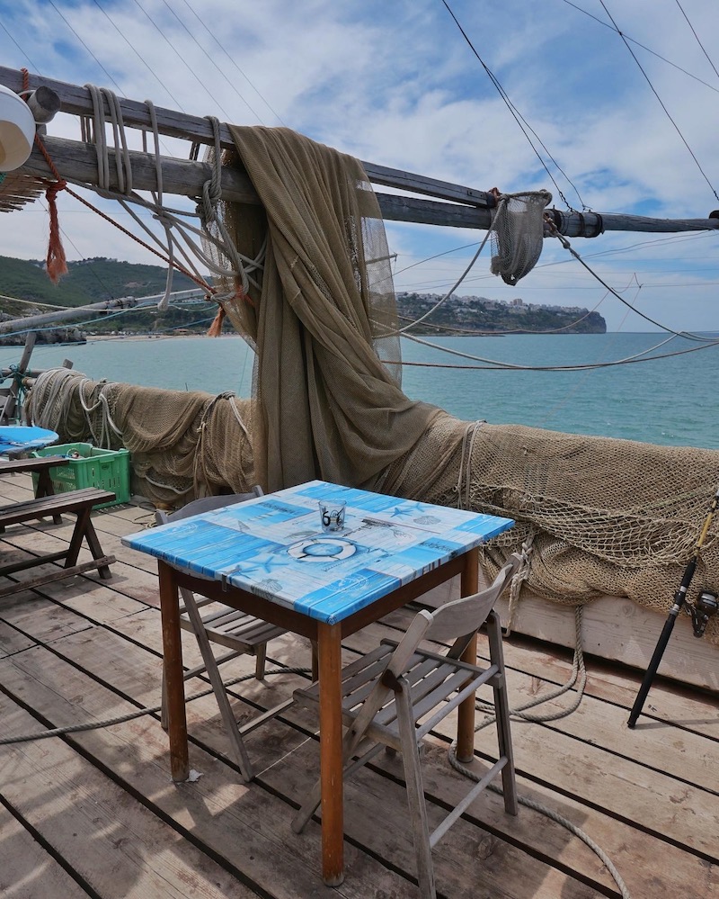 Una location unica che, oltre ad essere un presidio storico culturale importantissimo per l'area geografica (se non sapete cos'è un trabucco leggete questo mio articolo), da diversi anni è anche una location gettonatissima per pranzi e cene dal sapore unico. Immaginate di gustare del pesce freschissimo sospesi sul mare, circondati solo dal legno, dalle corde e dalle reti dei pescatori - e magari allietati da un magnifico tramonto. È fin troppo facile innamorarsi di queste location.