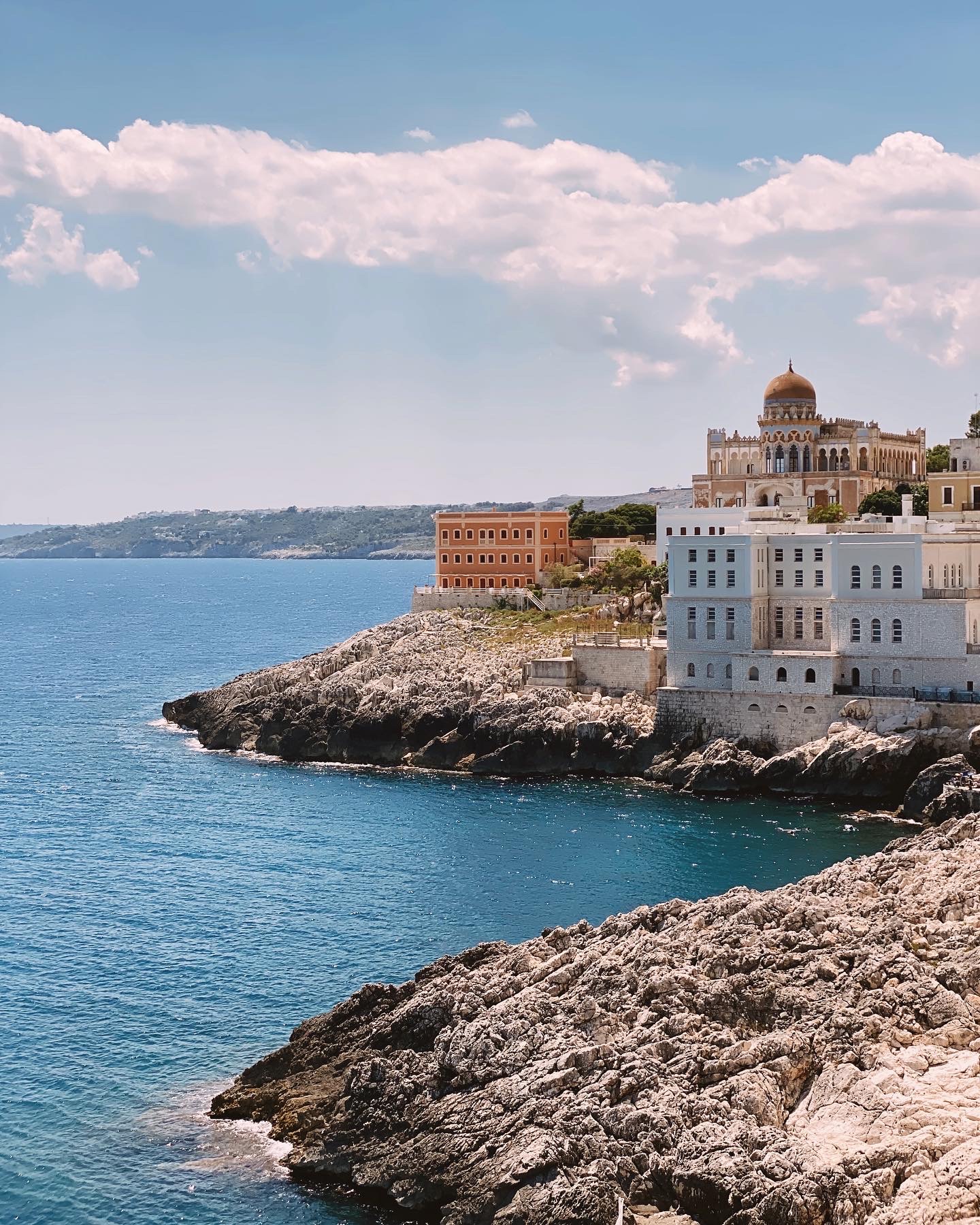Partendo da Leuca siamo risaliti su per l’Adriatico ed è stato un susseguirsi di scenari indescrivibili a parole: dalle ville in stile liberty di Santa Maria di Leuca, passando per Punta Meliso e Punta Ristola, lì dove c’è l’incontro dei due mari e si vede il cambio e l‘incrocio delle correnti, e poi via con i muretti a secco patrimonio dell’Unesco e l’infinita scogliera fatta di stalattiti e stalagmiti che fanno da contrasto al profondo e trasparente blu delle acque incontaminate.