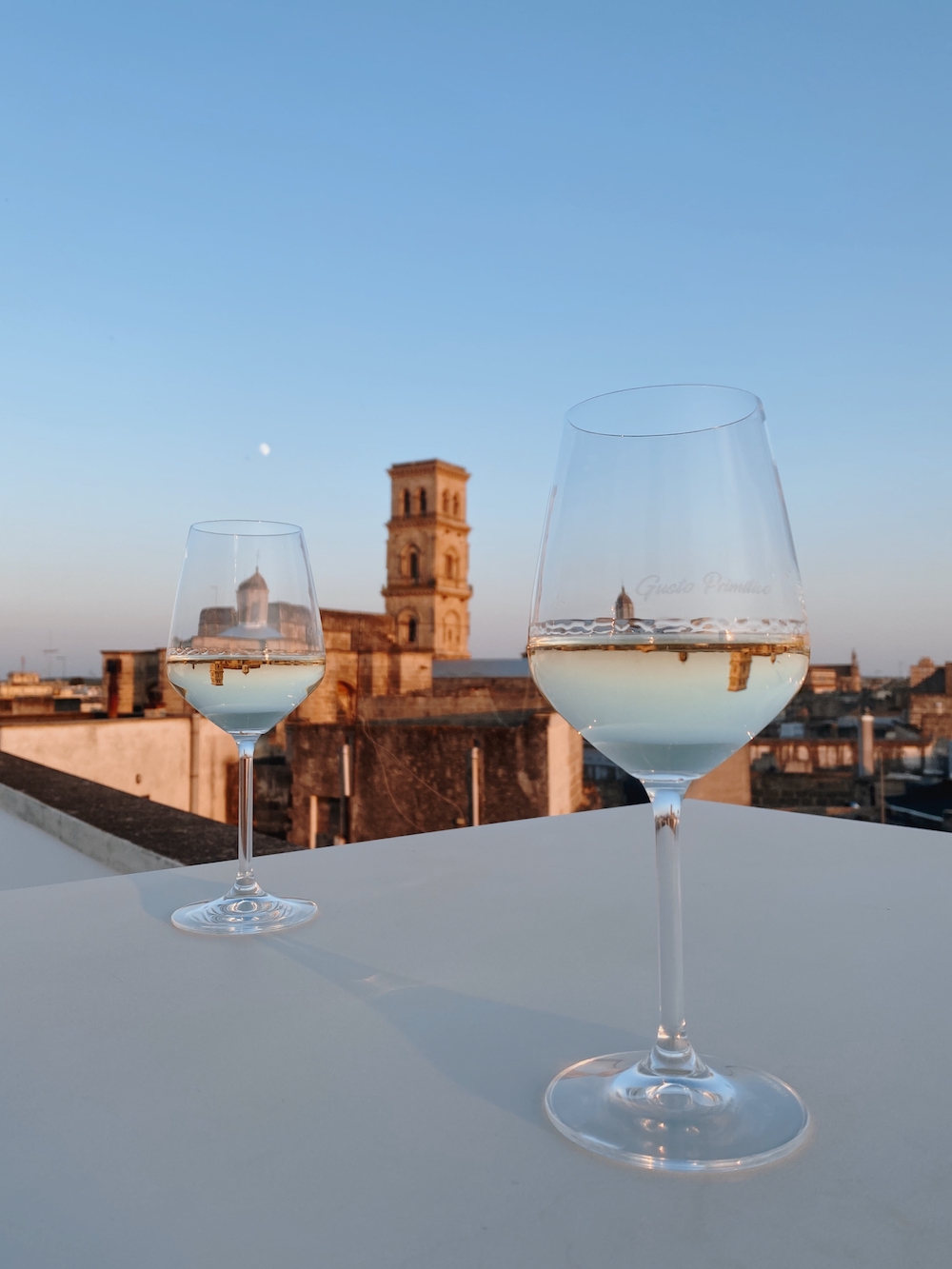 Bene, io ammetto di essere una romanticona, ma questo spettacolo per gli occhi con vista sull’intero centro storico che si colora di un arancione-dorato e si riflette nel tuo calice di vino primitivo con sottofondo Sfiorivano le viole di Rino Gaetano, bhe credo che farebbe innamorare ed emozionare chiunque.