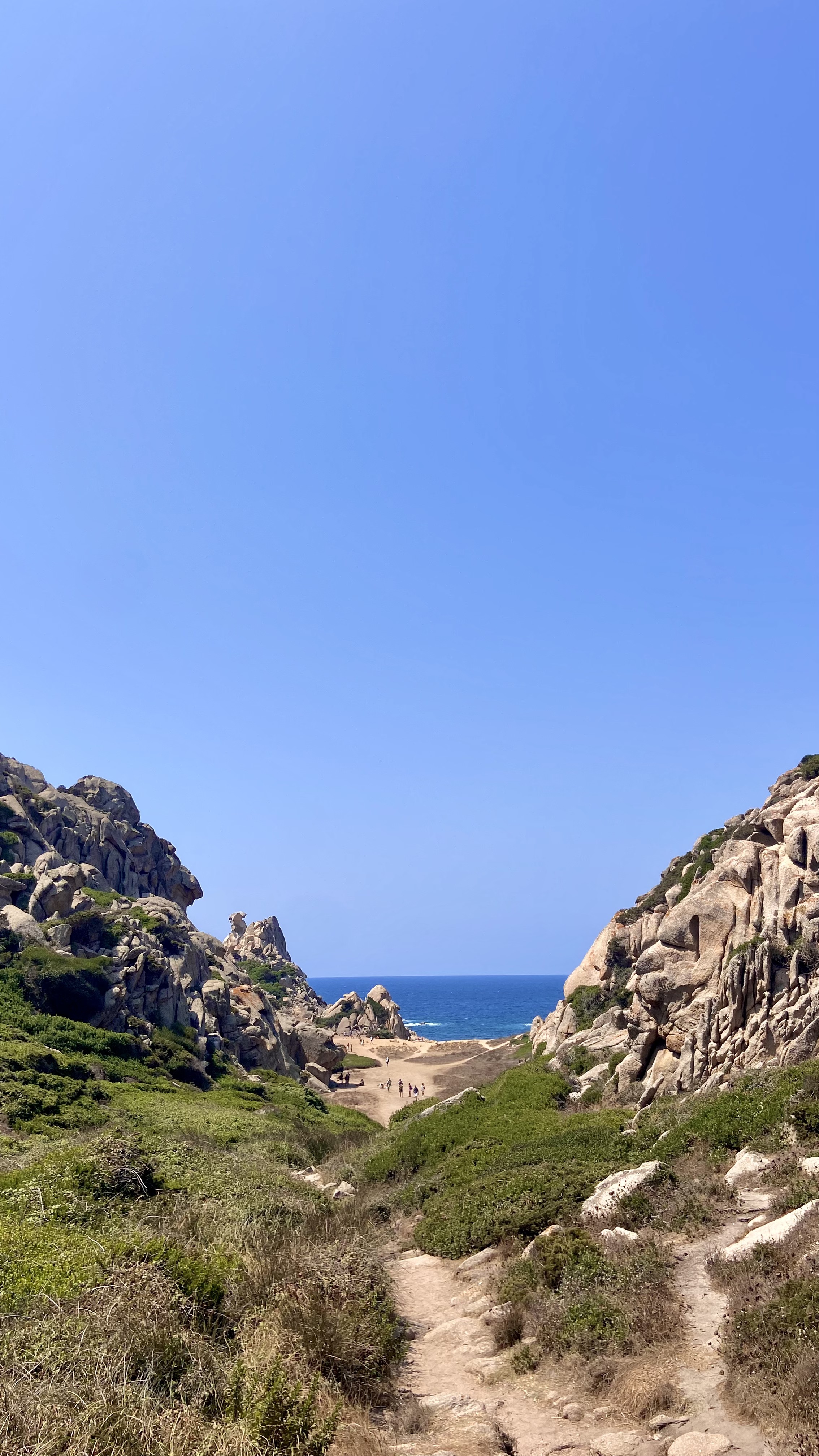 Le coste della Sardegna, com’è noto, non sono certamente meno ricche di magia. Fra gli angoli più significativi in tal senso è obbligatorio citare Capo Testa, con il suo faro e la sua vista sulle Bocche di Bonifacio e per le sue magnifiche spiaggette, tra cui spicca la Valle della Luna. Cala Grande (questo il suo antico nome) ci ha accompagnato verso un mare turchese, facendoci prendere per mano da maestosi massi levigati dal vento, da una vegetazione selvatica dal sapore quasi primitivo e da una comunità hippy che abita la valle e la impreziosisce con installazioni ed incisioni en plein air.
