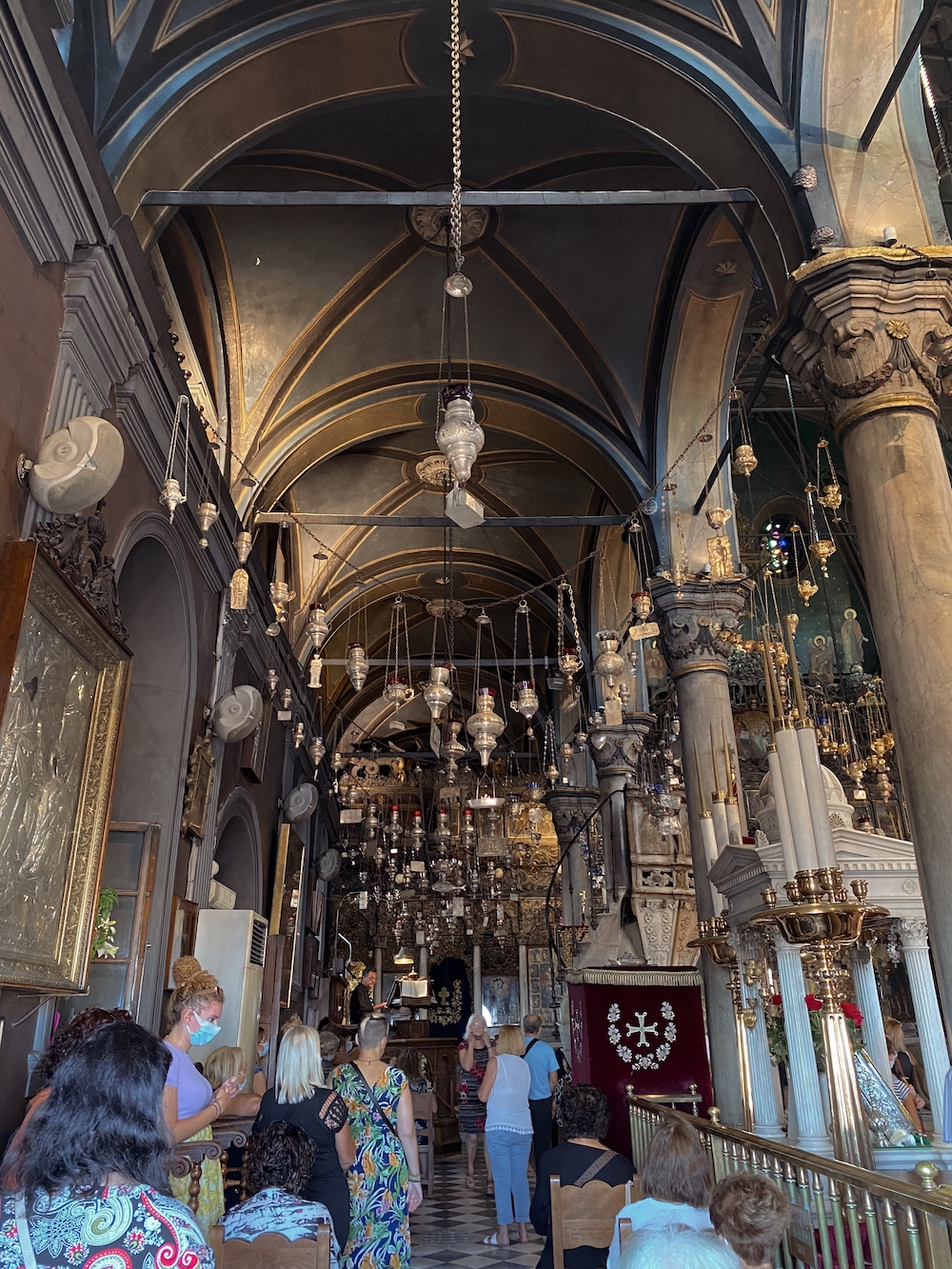 Oggi il turismo qui è molto più giovane e copre tutte le fasce di età, ma Tinos resta un importante sito turistico religioso per i greci ortodossi. Migliaia di pellegrini ogni anno arrivano sull'isola per l'Assunzione della Vergine Maria, il 15 agosto (infatti in quei giorni è molto difficile trovare posto dove soggiornare). Durante questo pellegrinaggio i fedeli camminano in ginocchio fino alla Chiesa di Panagia Evangelistria. E non solo durante il 15 agosto: pur essendo arrivati dieci giorni dopo, abbiamo visto numerosi fedeli dirigersi in ginocchio verso la Chiesa.