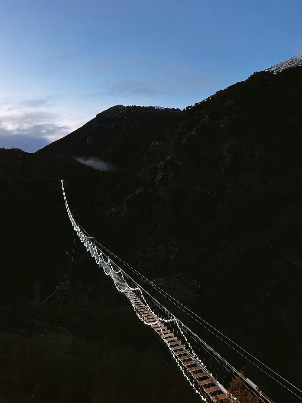 La chicca di questo periodo è sicuramente il ponte tibetano: in questo periodo di feste, quando diventa buio, si illumina completamente, come una grande stella cometa sospesa tra i due parchi nazionali. Meraviglioso.