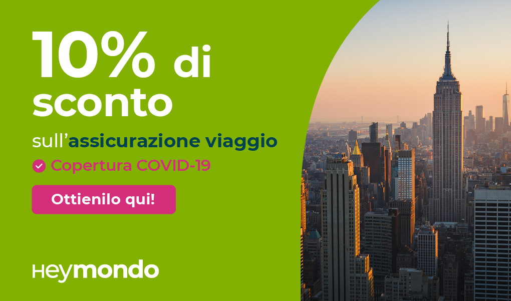 Per l'assicurazione di viaggio negli Stati Uniti potete approfittare dello sconto sulla polizza Heymondo, col miglior rapporto qualità - prezzo, riservato a tutti i miei lettori.