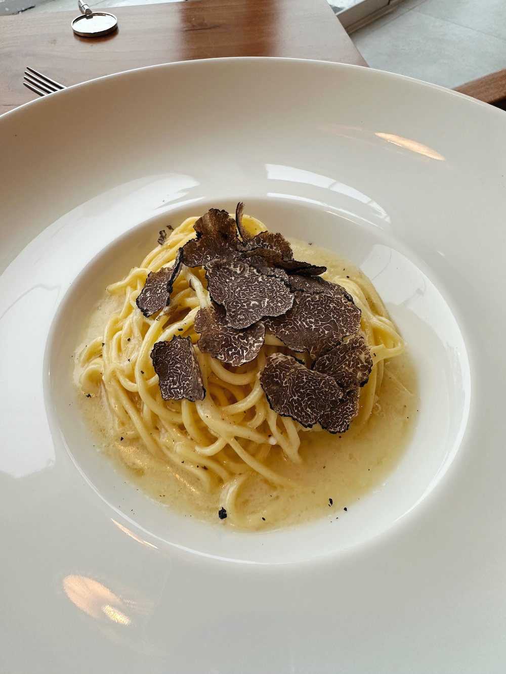 Da non perdere la mozzarella di bufala (grande must campano), ma anche tutti i primi piatti (sì, li ho provati quasi tutti e li ho trovati buonissimi, con un perfetto equilibrio tra gli ingredienti). Dal risotto carnaroli con polpa d'astice, peperone crusco e zucca mantovana al mischiato napoletano (dal sapore ricco e dalle quantità importanti) cotto in zuppetta di scorfano rosso e pomodoro del piennolo, fino ai tagliolini all'uovo con burro di bufala, tartufo di Bagnoli Irpino e Parmigiano 26 mesi. E potrei continuare ancora e ancora.