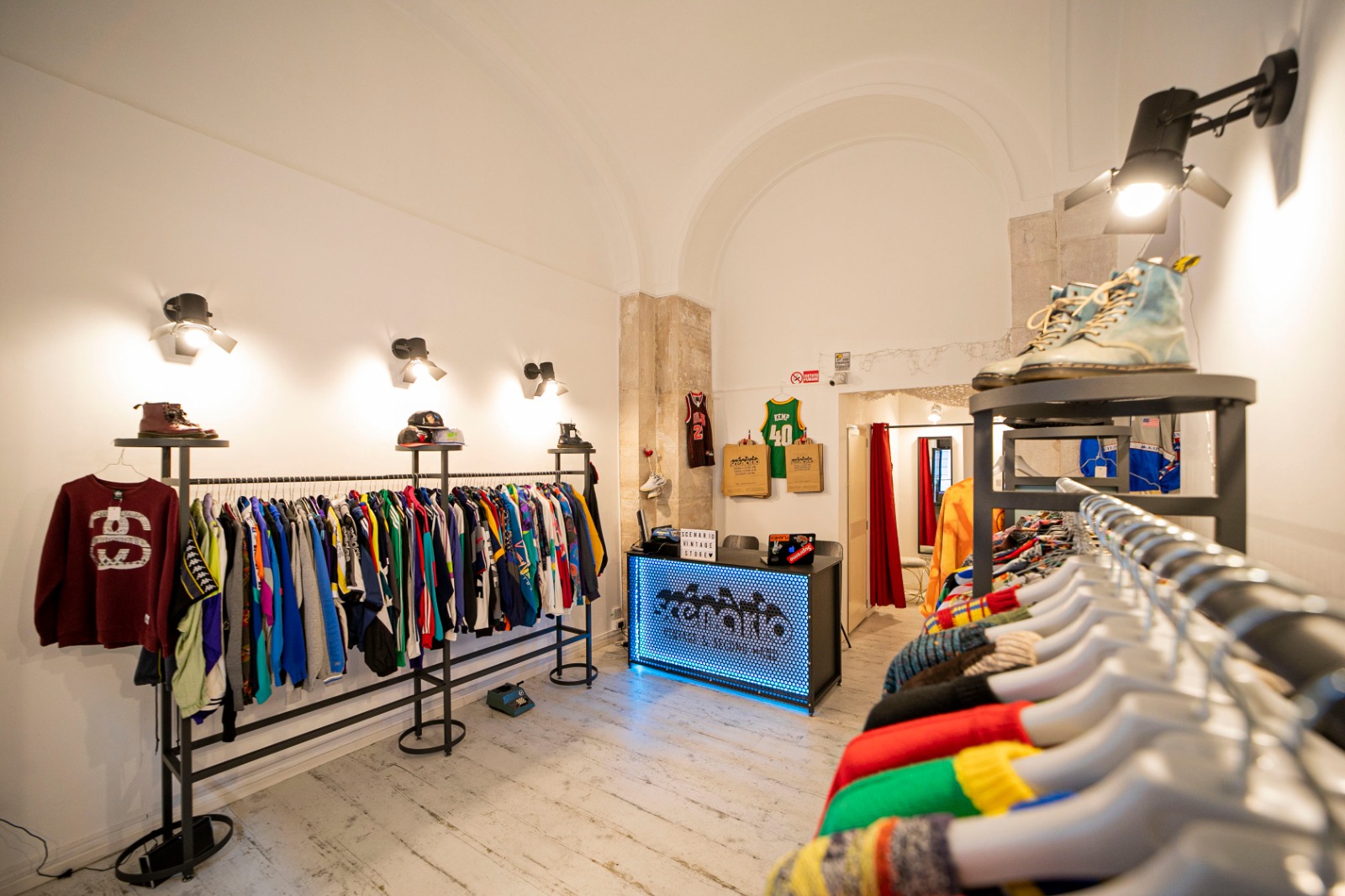 Girando l’angolo ci troviamo su una delle arterie della città, la fervida via de Giosa. Scenario nasce nel 2019, a due passi dal teatro Petruzzelli, dall’esperienza e dalla passione di Fabio. È lui che seleziona ogni capo con l’obiettivo di verificare l’assenza di difetti e offrire ai clienti un usato in perfette condizioni. “Sono tre anni che la domanda di abbigliamento vintage cresce sempre di più” racconta Fabio “soprattutto su determinati capi, come il trench di Burberry: se prima ne trovavo una decina al mese, ora al massimo uno ogni due o tre mesi. Per come seleziono io, ovviamente”. Jeanseria, capispalla e abbigliamento sportivo sono le categorie più assortite in questo vintage shop.
