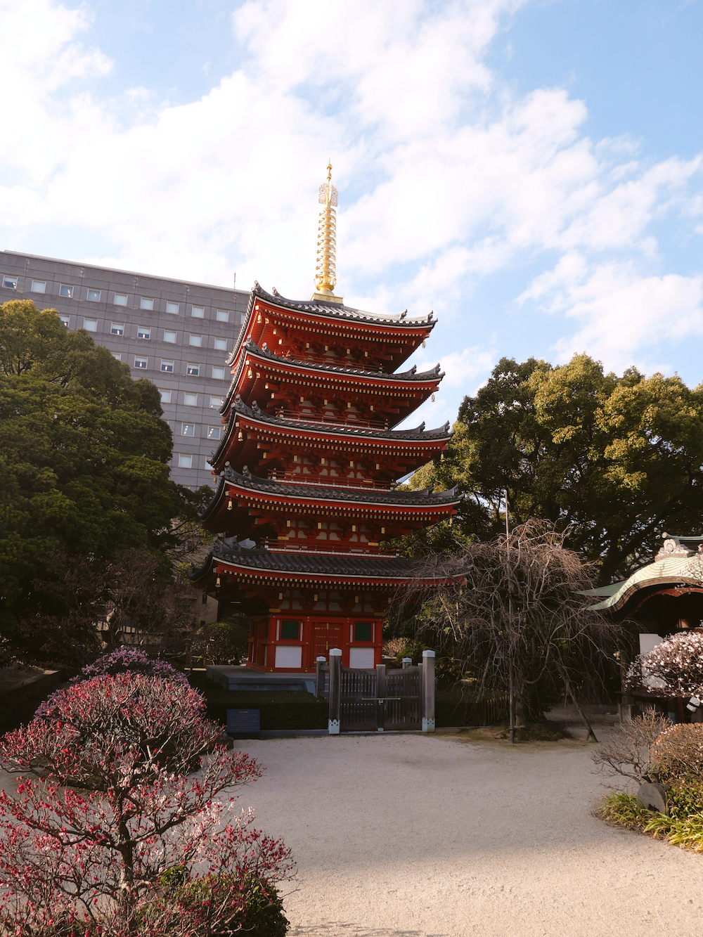 Oltre alla cucina, a Fukuoka c'è tanto da vedere. Nel poco tempo a disposizione io sono riuscita a fare una lunga passeggiata tra i suoi quartieri di sera (passeggiata assolutamente consigliata) e a godermi i suoi bellissimi templi.