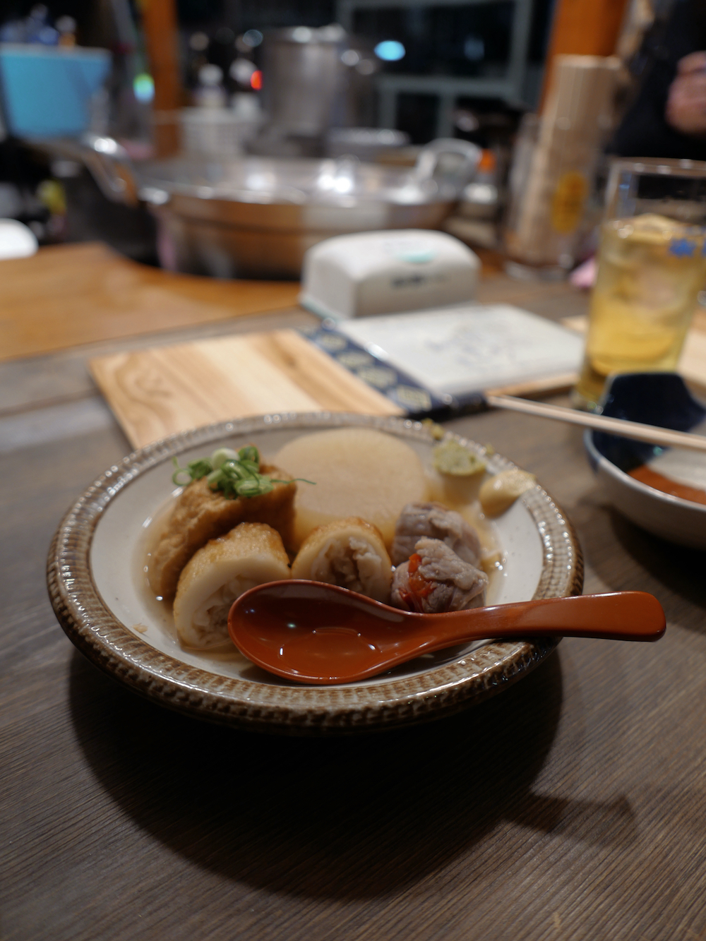 - Agodashitei Sakiich, la più "romantica" delle tre, a mio avviso. Ideale per gustare un buonissimo oden, una sorta di zuppa che prevede la cottura di vari ingredienti. Da accompagnare con sakè, shochu soda, té o altre bevande non tradizionali.