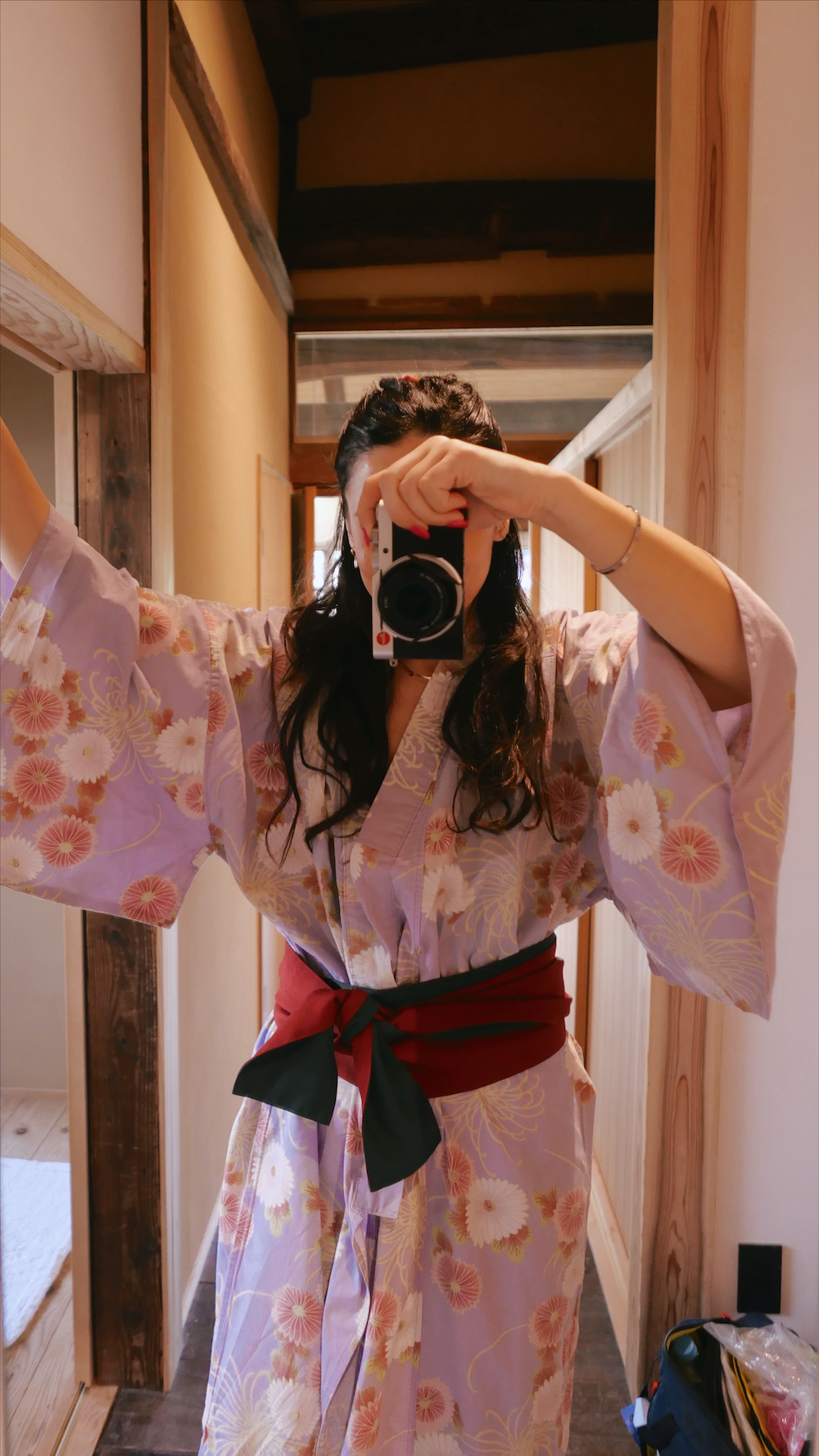 Dormire qui per me è stato come trasformarmi nella protagonista di un manga. Ho indossato gli abiti tradizionali giapponesi. Ho scoperto che quei calzini con l’alluce separato si chiamano tabi e quelle infradito (bellissime ma scomodissime) che ho sempre visto nei cartoni animati giapponesi (anime) si chiamano geta.