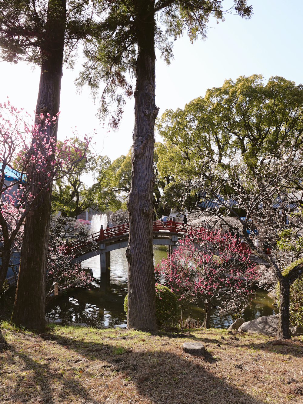 La specialità da non perdere a Dazaifu è l’umegae-mochi, il dolce tipico del santuario, che vedrete preparare in innumerevoli localini lungo la strada principale. Si tratta di una sorta di tortino di riso (mochi) ripieno di purea dolce di fagioli rossi azuki. Io l'ho trovato delizioso. Una curiosità: sul dolce vi è l’impronta di un fiore di prugno, ritenuto il preferito di Sugawara e simbolo del Dazaifu. Infatti il prugno a Dazaifu è molto importante: tra le fine dell’inverno e l’inizio della primavera ci si potrebbe imbattere nello spettacolo della fioritura dei 6000 prugni del santuario, un fenomeno che richiama tantissimi visitatori. Io ho avuto il privilegio di assistervi (seppure i prugni non erano ancora tutti completamente in fiore), essendovi stata a inizio marzo.