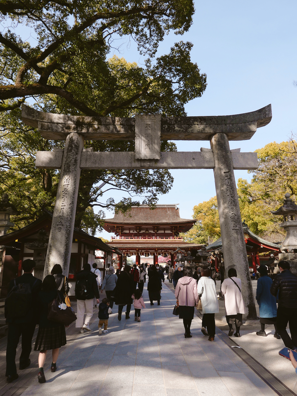 Con i suoi oltre 1100 anni di storia, il Dazaifu Tenmangū è dedicato allo studioso del IX secolo Sugawara Michizane, sepolto e venerato qui come Tenjin, il patrono shintoista dell’istruzione, della cultura e delle arti. Si tratta del principale di circa 12.000 santuari Tenjin disseminati in tutto il paese, oltre che una meta molto frequentata dagli studenti, che vi si recano a pregare per passare gli esami e ottenere buoni risultati.