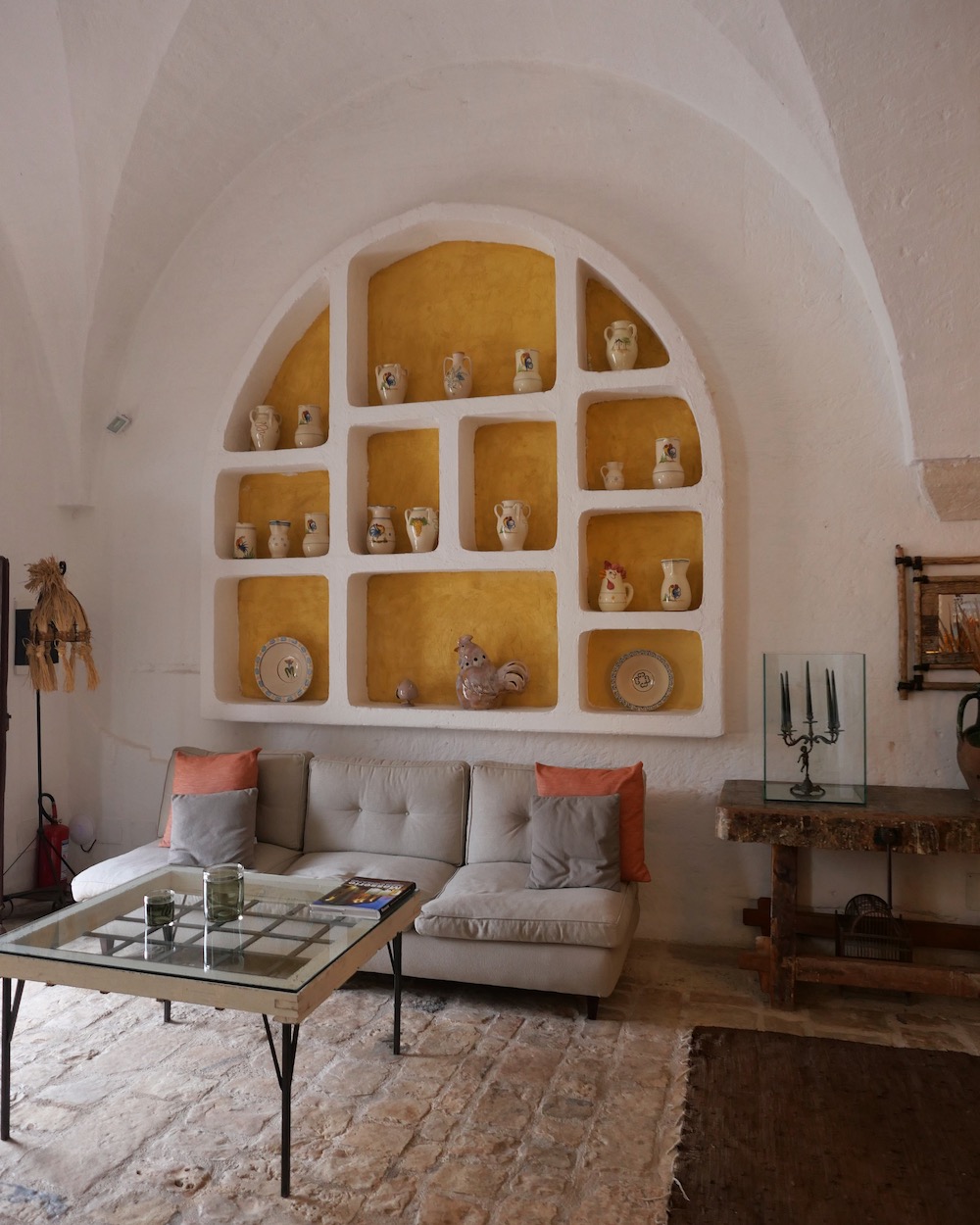Una masseria che, tra tante in Puglia, resta iconica grazie a questa parete dai dettagli gialli, che io sognavo da anni prima di andarci.