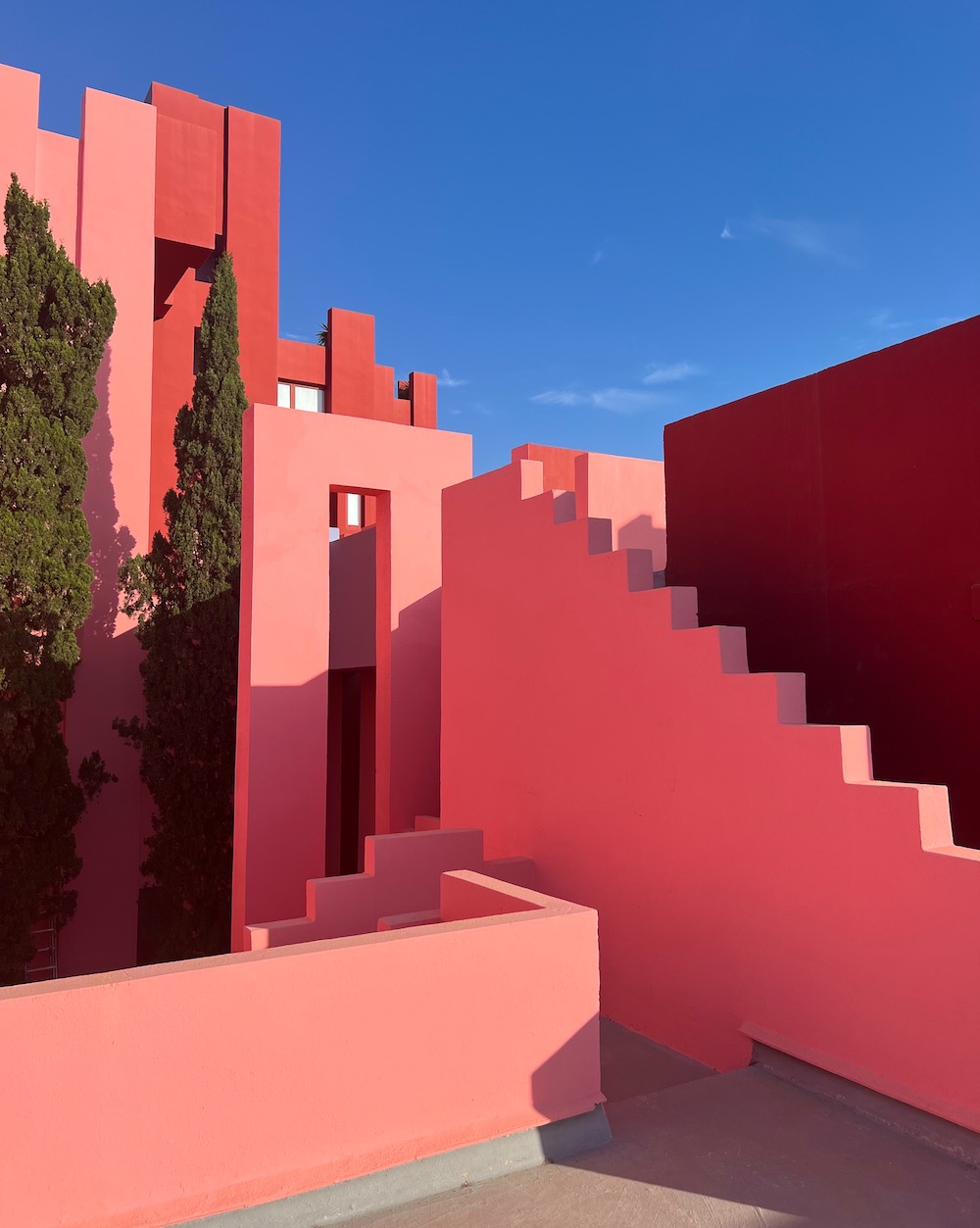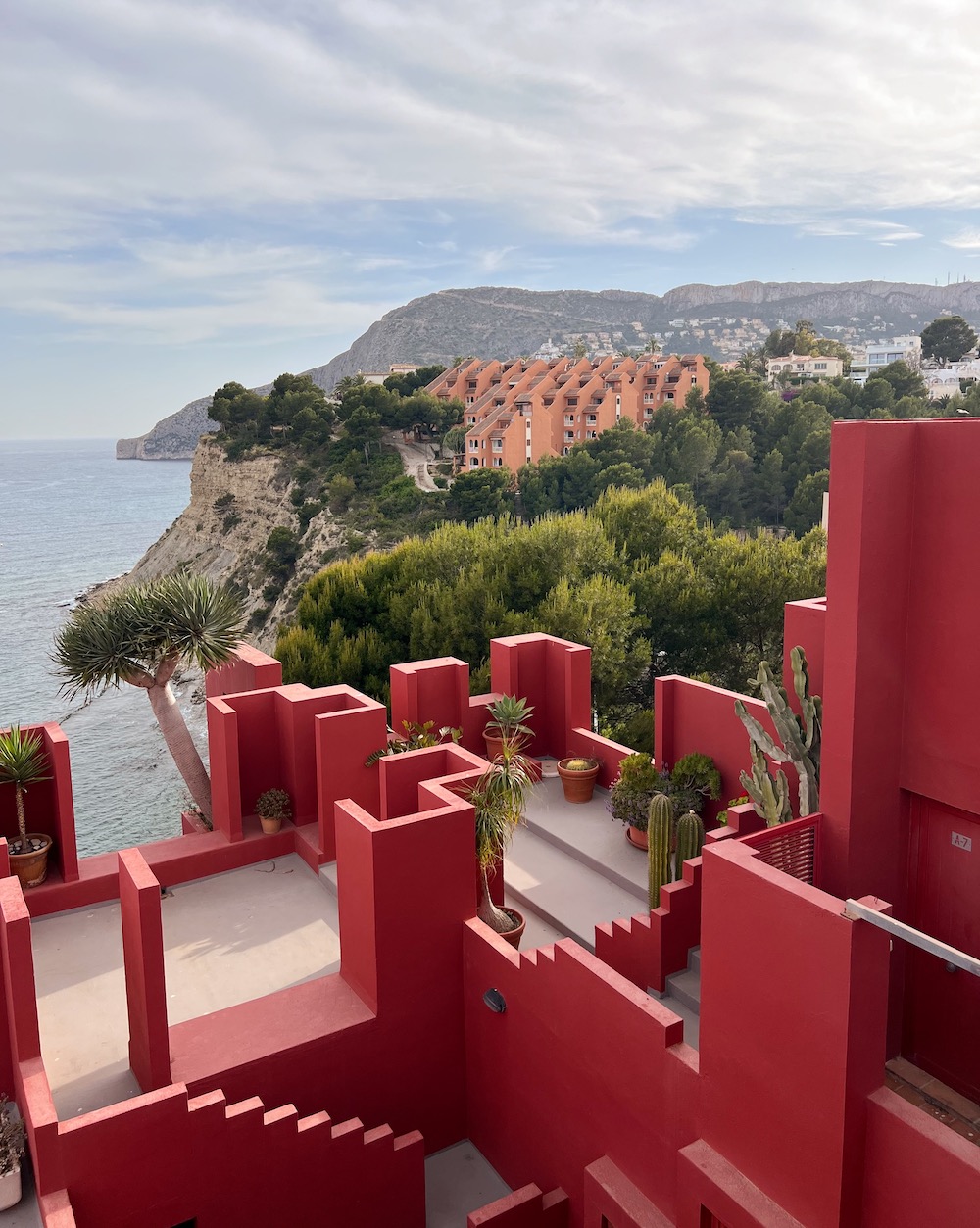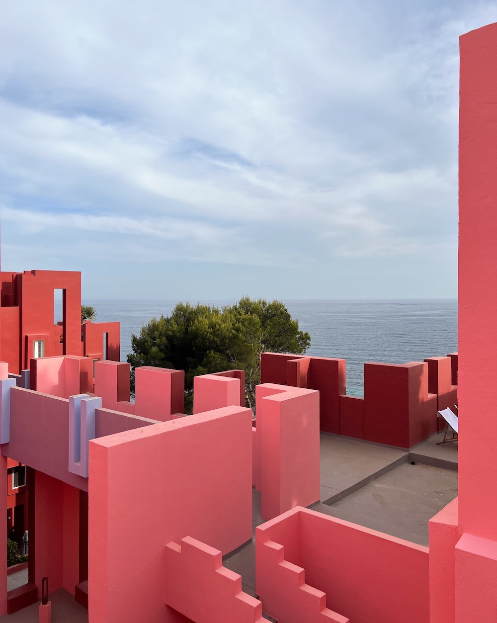 La Muralla Roja, o "Mura Rossa" in italiano, deve il suo nome al suo distintivo colore rosso, che contrasta magnificamente con il cielo blu e il mare turchese. La sua forma è un'incredibile fusione di geometria e colore, con spigoli affilati, scale esterne e una serie di terrazze che sembrano sfidare la gravità. Bofill si è ispirato alla tradizione mediterranea dell'architettura araba e ha integrato questo stile con il movimento architettonico del razionalismo.