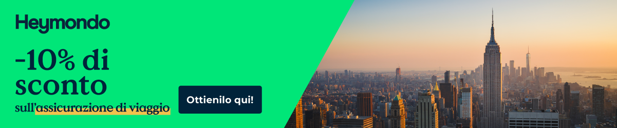 Non dimenticate un’altra cosa fondamentale: l’assicurazione di viaggio. Non farla potrebbe rovinarvi il viaggio negli Stati Uniti. Io da anni viaggio con serenità grazie alla polizza Heymondo - e posso offrirvi anche uno sconto speciale. Non sottovalutatene l'importanza. Non mi stancherò mai di dire che è la prima cosa da "mettere in valigia" quando si parte per l’America, insieme al passaporto!