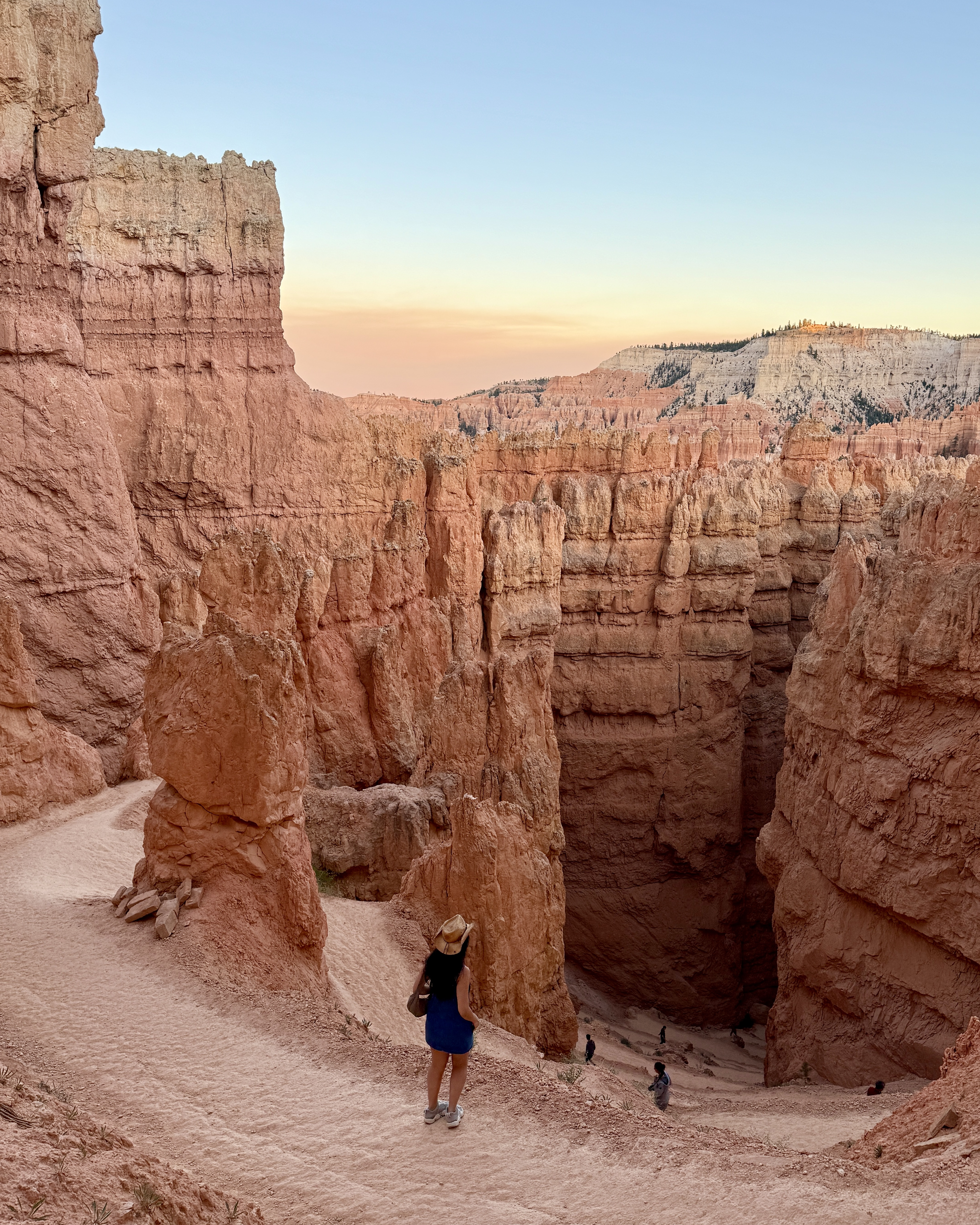 Sono i due punti più iconici e fotografati del Bryce, facilmente accessibili anche senza lunghe camminate. Io, però, vi consiglio di ritagliarvi un po' di tempo per i trail (per almeno uno). Io dal Sunset Point ho percorso il Navajo Loop Trail, un sentiero di circa 2,2 km che scende tra le guglie e attraversa punti iconici come Wall Street, una stretta gola tra altissime pareti di roccia. Il percorso è abbastanza impegnativo perché prevede una discesa e poi una salita, ma è breve e davvero suggestivo. Ne vale la pena. Arrivate almeno un'ora - un'ora e mezza prima del tramonto per poter percorrere con calma questo percorso prima che diventi buio.