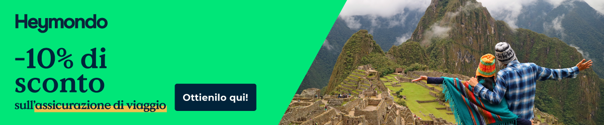 Io consiglio di partire coperti con una buona assicurazione di viaggio. Se segui il mio link, puoi ottenere uno sconto Heymondo, che offre coperture complete per spese mediche, imprevisti, cancellazioni e assistenza h24 e - come vedrai - ha un ottimo rapporto qualità-prezzo. Io la utilizzo da oltre 7 anni.
