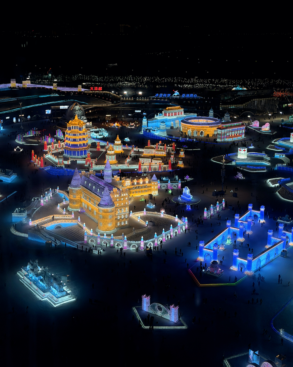 Harbin Ice and Snow World è molto più di una semplice esposizione di sculture: è una vera città di ghiaccio temporanea che si accende ogni inverno.