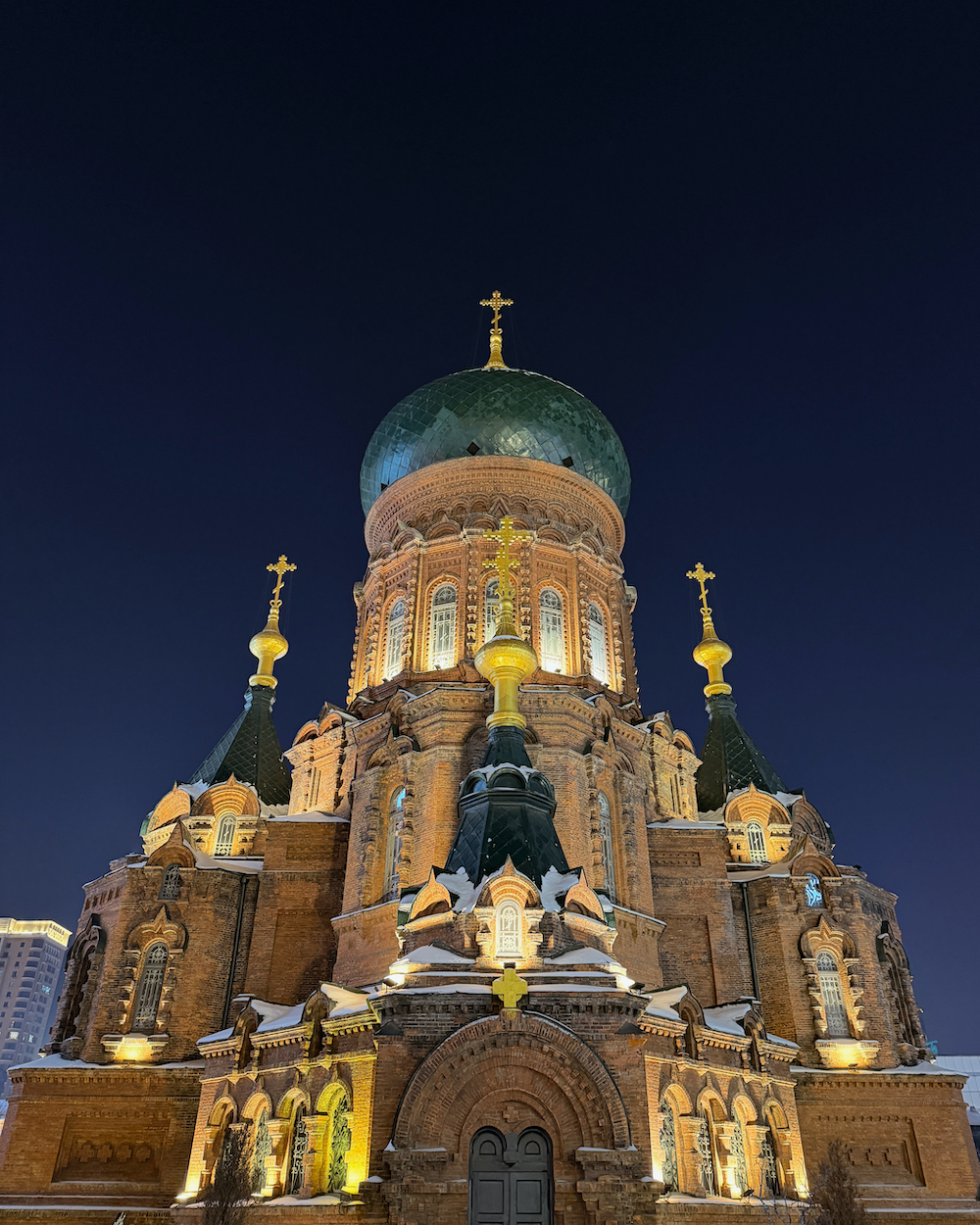 La Cattedrale di Santa Sofia, simbolo della città e massimo emblema dell’influenza ortodossa. La sua architettura in stile russo, con la grande cupola verde, è uno dei luoghi più iconici di Harbin.