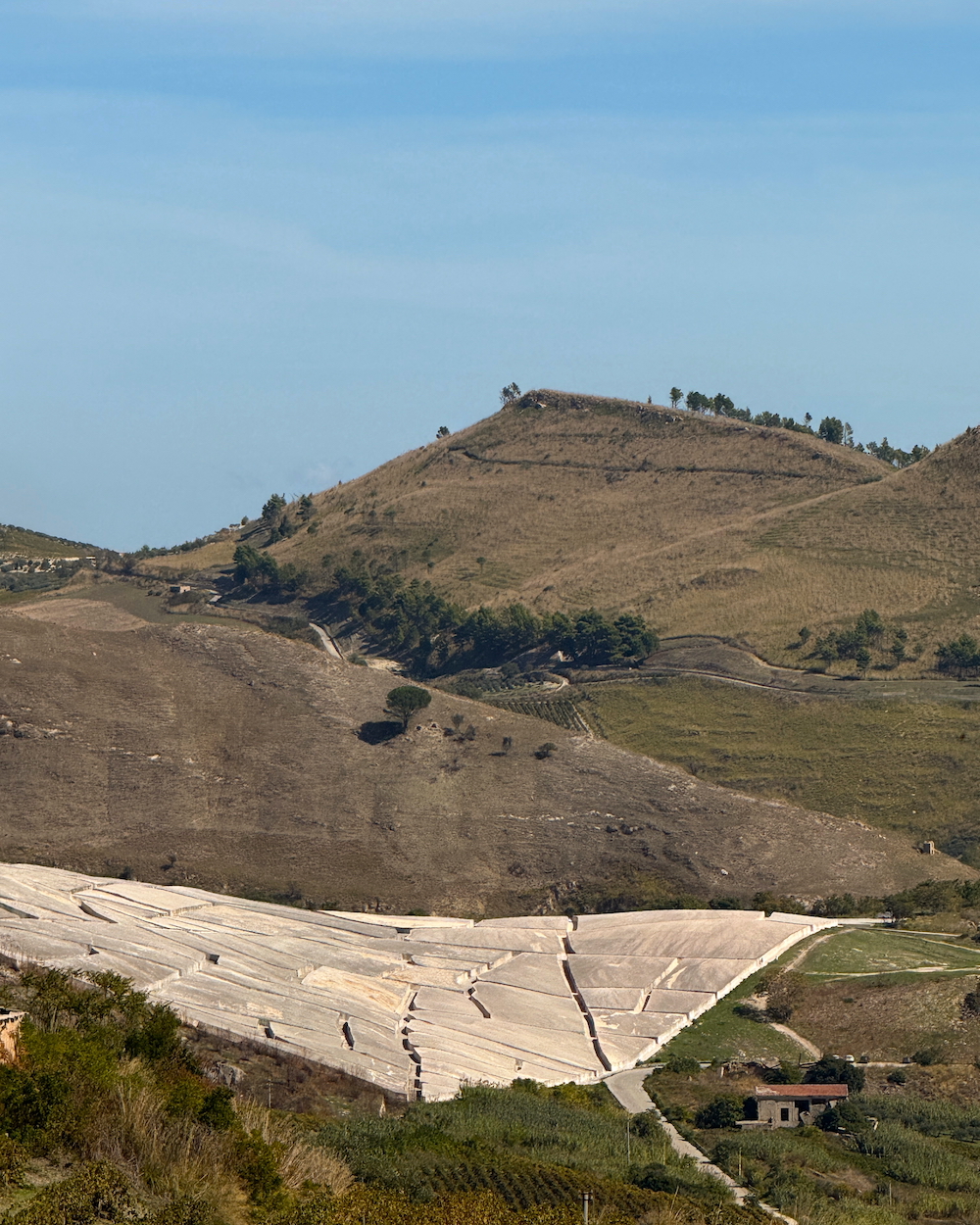 Gibellina è uno dei luoghi più particolari che abbia mai visitato. Nel 1968 un terremoto devastante distrugge il paese. Invece di ricostruire, l'artista Alberto Burri copre le macerie con una colata di cemento bianco — il Cretto — che segue ancora il tracciato delle strade e delle case.